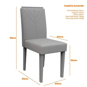 Transforme a sua sala de jantar com o Conjunto de 2 Cadeiras Amanda. Com uma estrutura robusta em MDF e pintura UV, essas cadeiras são tanto duráveis quanto elegantes. O revestimento em tecido, juntamente com a espuma D-18 no assento e no encosto, garante conforto excepcional. As cantoneiras de travamento em aço carbono proporcionam estabilidade extra, enquanto os pés em MDF completam o design sofisticado. Cada cadeira tem capacidade para suportar até 120 kg, unindo estilo e resistência. Transforme seu ambiente com qualidade e design superior!
