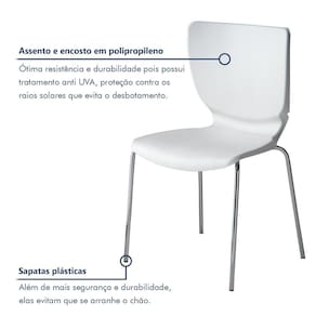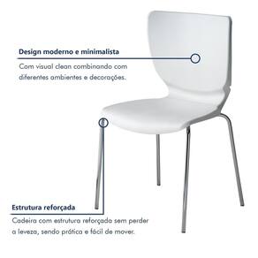 Receber bem nunca foi tão prazeroso! Nosso conjunto de cadeira une conforto, estilo e durabilidade para transformar seus momentos à mesa em verdadeiras experiências. Com encosto ergonômico, ela proporciona o suporte ideal para as costas, perfeita para longas refeições e boas conversas. Seu design se adapta facilmente a diversos estilos de decoração, do clássico ao contemporâneo. Produzida com materiais de qualidade e tratamento anti UVA, resiste ao tempo e à exposição solar sem perder a cor ou o charme. Ideal para quem busca sofisticação e bem-estar em todos os detalhes. Qual o benefício de uma cadeira com encosto confortável? Mais apoio para as costas e conforto prolongado à mesa. Qual a vantagem da cadeira com estrutura tubular? A base tubular oferece durabilidade e um visual moderno. Acabamento: Pintura Acabamento da Estrutura: Pintura Altura do assento até o chão: 43 cm Altura dos Pés: 43 cm Altura Máxima dos Pés: 43.0000 Ambiente Principal: Cozinha codigo_ean: 7900288186874 Cor: Branco Cor do Produto: Branco Dobrável: Não Escala de Brilho: Fosco Estrutura do Assento: Polipropileno Estrutura do Encosto: Polipropileno Giratória: Não Informações Complementares: Por se tratar de produto injetado, pequenas variações de tonalidade de cor são intrínsecas ao produto, e não podem ser consideradas defeito. Para aprimoramento de projeto, os produtos podem sofrer modificações. Itens Inclusos: 2 Cadeiras Linha ou Coleção: Mono Manual de Montagem e Instalação: https://product-hub-prd.madeiramadeira.com.br/237906759/documents/fc6deaad-6556-46cf-ac2c-9e8c3f919d60303573273217513770997416.pdf Marca: Prima Design Material da Base: Aço Material Principal: Aço Necessita Montagem: Não Origem do Produto: Nacional Peso: 3,6 kg Possui Apoio para Braços: Não Possui Rodízio: Não Quantidade de Itens: 2 Recomendações de Uso, Manutenção e Limpeza: A estrutura deve ser limpa utilizando pano seco de algodão ou flanela. Se necessário, utilize panoumedecido apenas com água, secando o móvel em seguida.Não utilize solvente, álcool, acetona, lustra móveis, produtos abrasivos e outros produtos que contenhamsoda e ou ácidos para limpar e tirar manchas dos móveis.Não expor os móveis à luz solar e ambientes com umidade relativa elevada.Manter a estrutura metálica limpa, utilizando pano seco ou cera a base de silicone. Tipo de Assento: Fixo Tipo de Encosto: Fixo Marca: Não Informado