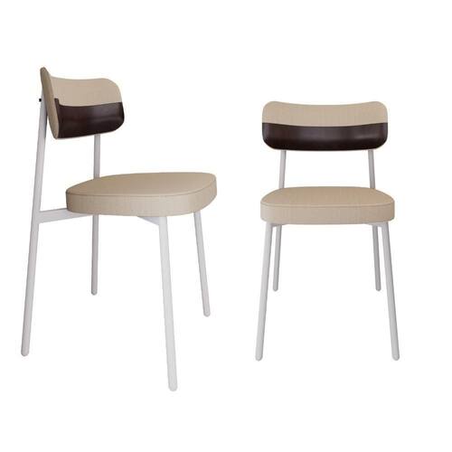 Conjunto 2 Cadeiras De Jantar Alloa Corriente Areia Courino Café Estrutura Branca - Branco
