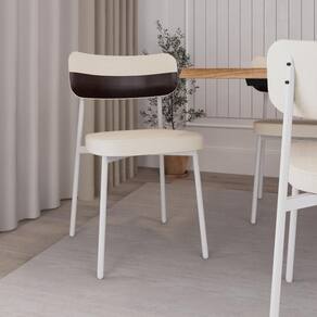Conjunto 2 Cadeiras De Jantar Alloa Corriente Palha Courino Café Estrutura Branca - Branco