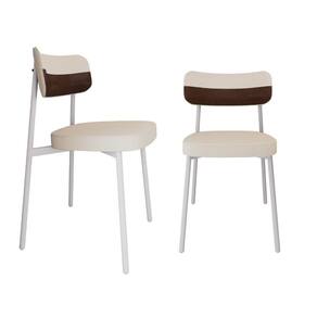 Conjunto 2 Cadeiras De Jantar Alloa Corriente Palha Courino Whisky Estrutura Branca - Branco