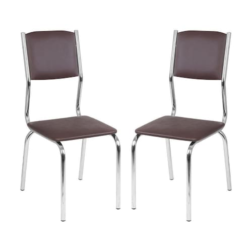 Conjunto 2 Cadeiras De Jantar Estofadas Multimóveis Cr50132 Marrom Transforme sua sala de jantar com o Conjunto 2 Cadeiras de Jantar Estofadas Multimóveis CR50132! O design moderno combina pés em aço carbono cromado com ponteiras protetoras, preservando seu piso e trazendo durabilidade. O assento e encosto estofados, revestidos em material sintético, proporcionam conforto imbatível e fácil limpeza. Cada cadeira suporta até 110kg ? , resistência e beleza para o seu dia a dia. Conteúdo da Embalagem: 2 duas Cadeiras