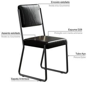 Linha: Sala de Jantar | Comprimento: 46 | Profundidade: 52 | Altura: 87 | Altura do Assento até o chão: 49 | Altura do Encosto até o chão: 56.5 | Dimensões do Assento: 43,5x44x8cm | Dimensões do Encosto: 42,5x30,5x3,7cm | Peso Líquido: 11.9 | Material Principal Composição: Aço/MDP/Espuma/Tecido | Material da Estrutura Pés: Aço | Acabamento Estrutura: Epóxi-Pó | Tipo de Encosto: Fixo | Material Estrutura do Encosto: Aço | Enchimento Encosto: Espuma D-22 | Revestimento do Encosto: Courino | Tipo do Assento: Fixo | Material Estrutura do Assento: MDP | Enchimento Assento: Espuma D-28 | Revestimento do Assento: Courino | Possui Braços: Não | Tipo: Cadeira | Modelo: Fixo | Empilhável: Não | Dobrável: Não | Ambiente Principal: Sala de Estar Jantar | Estilo: Contemporâneo | Suporta Até (kg): 120kg | Requer montagem: | Altura da cadeira: | Profundidade do assento: | Quantidade de cadeiras por conjunto: | Largura do assento: | Inclui manual de montagem: | Marca: