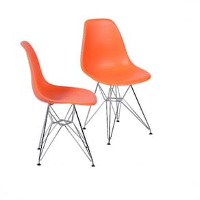 As 2 cadeiras do kit Eames DKR OR-1102 são produzidas em polipropileno com base cromada e fios de aço carbono entrelaçados, proporcionando uma estrutura resistente. Excelente opção para deixar o espaço muito mais aconchegante e com visual atraente. Estas cadeiras são resistentes a risco, de fácil limpeza e suportam 120 Kg. Altura do Conjunto: cm Ambiente: Sala de Estar Ambiente Principal: Sala de Estar Cor: Laranja Informação Complementar: 2x Cadeira Polipropileno Base em Metal Laranja Largura: 46 Altura: 80,5 Peso: 4,62 Profundidade: 42 Necessita Montagem: Sim