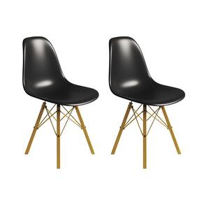 Conjunto 2 Cadeiras Eames Tubo Ferro Dourado Assento Preto
