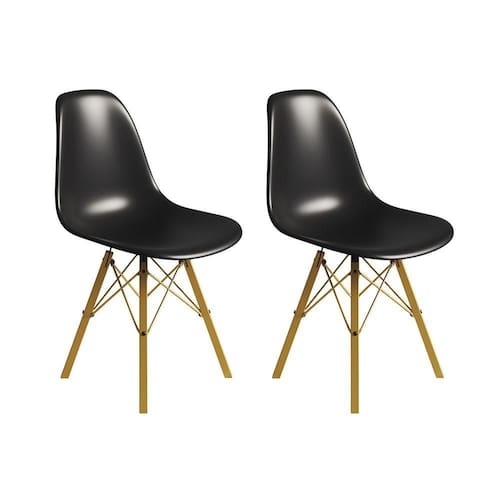 ATENÇÃO AS IMAGENS SÃO MERAMENTE ILUSTRATIVAS E PODEM SOFRER VARIAÇÕES DE COR E PEQUENOS DETALHES DE ACORDO COM O SEU MONITOR, ILUMINAÇÃO DO AMBIENTE E ATÉ MESMO A SUA PERCEPÇÃO VISUAL.Conjunto 2 Cadeiras Eames Tubo Ferro Dourado Assento Preto