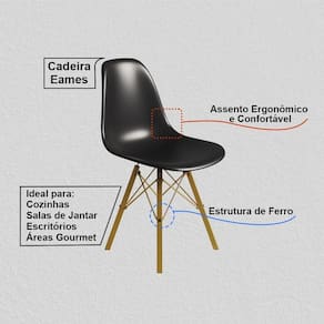 Compacta e funcional, a Cadeira Eames é perfeita para quem busca unir estilo, praticidade e conforto em um só produto.