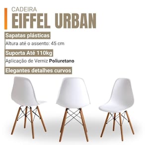 Cadeira Eiffel Pés Madeira Maciça Urban Wood Elomio Design Atemporal e Sofisticação para o Seu Espaço A Cadeira Eiffel Pés Madeira Maciça Urban Wood Elomio é um ícone de elegância e modernidade. Inspirada no clássico design dos renomados Charles e Ray Eames, esta cadeira é a escolha perfeita para quem busca unir estilo e conforto em qualquer ambiente. Ideal para compor salas de jantar, escritórios e espaços de convivência, a Urban Wood Elomio é um exemplo de como o design clássico e o contemporâneo podem coexistir em harmonia. Esta cadeira destaca-se pela estrutura resistente em madeira maciça Faia, acabamento em verniz poliuretano e um perfil de aço com pintura epóxi-pó, combinando durabilidade e requinte. Seu assento e encosto em polipropileno oferecem conforto ergonômico, enquanto as sapatas plásticas asseguram proteção para o piso. Com suporte para até 110 kg, a cadeira foi projetada para suportar o uso diário sem comprometer o estilo.