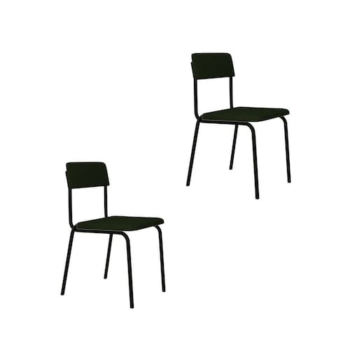 Conjunto 2 Cadeiras Estofadas Fixa Empilhável Fit Verde Musgo City / Preto Fosco MT