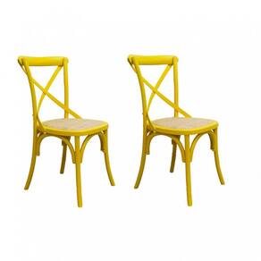 Informações Complementares: Conjunto com 2 Cadeiras fixas destinadas para uso interno, estrutura física em madeira bétula, com encosto vazado em formato X e assento revestido com rattan marroml. Não reclinável, sem ajuste de altura, não empilhável.