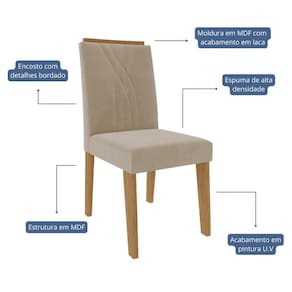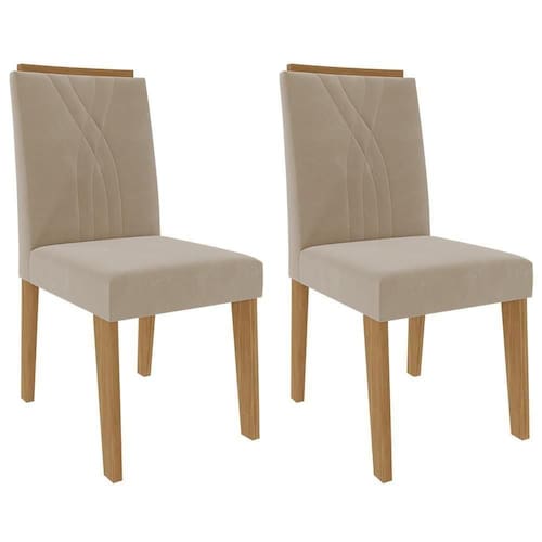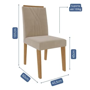 Conjunto 2 Cadeiras Nicole Nature/suede Nude - Cimol Móveis Nature/suede Nude Conjunto 2 Cadeiras Nicole - Cimol Móveis O Conjunto de Cadeiras Nicole une sofisticação e conforto para compor sua sala de jantar com elegância. Sua estrutura em MDF com acabamento em pintura UV garante resistência e durabilidade. O assento revestido em tecido e a espuma de alta densidade proporcionam máximo conforto. O encosto com detalhes bordados e a moldura em MDF com acabamento em laca agregam um toque refinado ao design. Com pés em MDF e capacidade para suportar até 100kg, é a escolha perfeita para quem busca estilo e qualidade. ESPECIFICAÇÕES: - Estrutura em MDF - Pintura UV - Revestimento em tecido - Espuma de alta densidade - Encosto com detalhes bordados - Moldura em MDF com acabamento em laca - Pés em MDF - Cada cadeira tem capacidade para suportar até 100kg