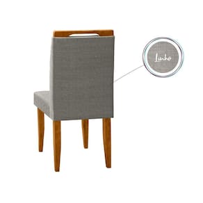 Material da estrutura: Madeira de eucalipto 20 mm e sustentação com MDF com espuma D28, revestido com tecido de linho, encosto com percintas elásticas de alta resistência;