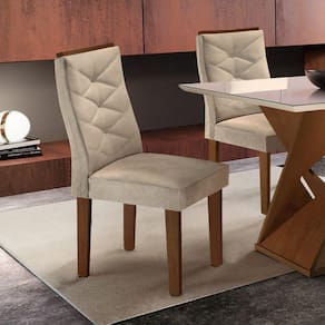 Quem gosta de receber em casa sabe como é importante ter móveis de qualidade e conforto que façam os convidados se sentirem em casa. Com o Conjunto com 2 Cadeiras de Jantar Germany, você terá isso e muito mais! De design elegante, ela é fabricada com materiais de primeira, e sua espuma, garante um aconchego todo especial. Além disso, ela conta com um estilo único e charmoso, que vai arrancar elogios! Perfeita, não é mesmo? Acabamento da Estrutura: Pintura Almofada do assento: Fixa Altura do assento até o chão: 44 cm Apoio para Braços Estofado: Não Complexidade da Montagem: Média: pode ser montado por mais de uma pessoa e/ou necessite de maior conhecimento para montagem Cor: Chocolate Cor do Produto: Chocolate Dobrável: Não Enchimento do Assento: Espuma D-23 Enchimento do Encosto: Espuma D-20 Escala de Brilho: Fosco Estrutura do Assento: MDF Estrutura do Encosto: MDF Giratória: Não Itens Inclusos: 2 Cadeiras e Manual de Montagem. Linha ou Coleção: Germany Manual de Montagem e Instalação: https://cdn2.madeiramadeira.com.br/atributo/cel-moveis/549993-cadeira-germany.pdf Necessita Montagem: Sim Origem do Produto: Nacional Peso: 8 kg Possui Apoio para Braços: Não Possui Apoio Para os Pés: Não Possui Rodízio: Não Recomendações de Uso, Manutenção e Limpeza: Limpeza com pano macio e levemente umedecido. Não ultilizar solventes a base e de inflamáveis. Não utilizar produtos abrasivos. Revestimento do Assento: Jacquard Revestimento do Encosto: Jacquard Sistema de Montagem: Parafuso Tipo de Assento: Fixo Tipo de Encosto: Fixo