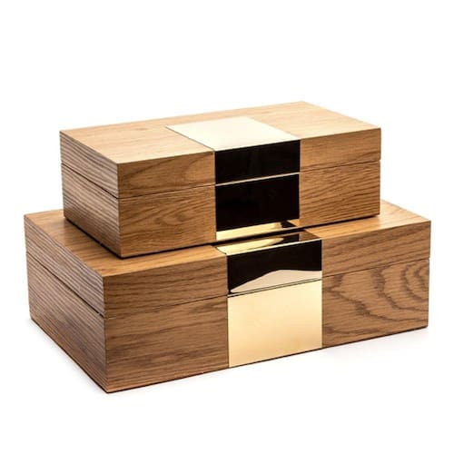 Conjunto 2 Caixas de Madeira Detalhe em Metal Dourado