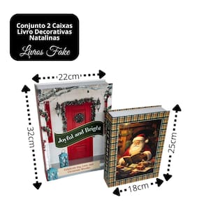 Conjunto 2 Caixas Livro Fake Natal Porta Objetos Premium – Grande e Média