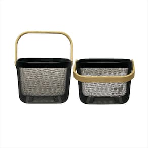 Cesta Organizador em Tela Metálica Preta com Alça de Madeira - 24,5 x 24,5 x 18 cmOrganize com charme, ventile com praticidade e decore com estiloA Cesta Organizadora em Tela Metálica com Alça de Madeira é o item perfeito para quem busca unir funcionalidade com design contemporâneo. Fabricada com estrutura metálica resistente e acabamento em pintura preta fosca, esta cesta proporciona um visual sofisticado e ao mesmo tempo discreto - ideal para compor diferentes ambientes da casa com harmonia e personalidade.Características Técnicas:Material do corpo: Tela metálica em aço com pintura eletrostática acabamento fosco, durável e resistente à corrosão .Material das alças: Madeira natural envernizada acabamento suave ao toque, com efeito visual quente e acolhedor .Dimensões:24,5 cm largura 24,5 cm profundidade 18 cm altura Vantagens e Aplicações:Organização multifuncional: ideal para armazenar toalhas de mão, rolos de papel, cosméticos, sabonetes, acessórios de cabelo, temperos, pacotes de alimentos, potes de mantimentos, talheres, panos de prato, entre outros.Estilo versátil: combina perfeitamente com banheiros modernos, cozinhas abertas, lavanderias planejadas, home offices, espaços gourmet ou prateleiras decorativas.Boa ventilação: a estrutura vazada de tela permite a circulação de ar, ideal para produtos que precisam respirar, como esponjas, alimentos secos ou tecidos.Fácil de transportar: as alças de madeira anatômicas facilitam o manuseio mesmo quando a cesta está cheia.Visual decorativo: o contraste entre o metal preto e a madeira clara oferece um toque natural e elegante à decoração.Images IlustrativasDica de uso:Monte um conjunto com outras cestas similares e crie um sistema de organização modular. Combine com etiquetas ou tags para uma organização ainda mais eficiente e charmosaEssencial para quem valoriza ambientes organizados, funcionais e visualmente agradáveis.Com esta cesta, até as pequenas tarefas do dia a dia ganham um toque de bom gosto e praticidade.