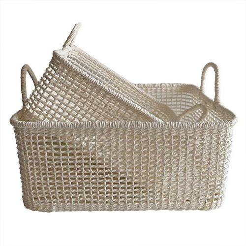 Conjunto 2 Cestos Decorativos em Rattan Branco