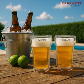 O Conjunto de 2 copos Longo para Sucos, Latte Macchiato, Cerveja e Drink 350ml da Bugatti é exclusivo, singular e elegante.