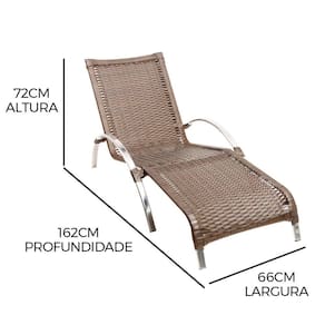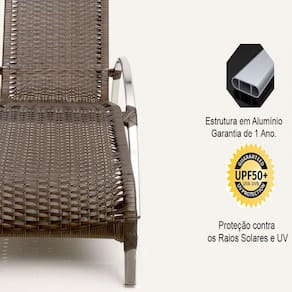 Itens Inclusos :02 Espreguiçadeira Emily em Alumínio01 Mesa de Centro Garden Características:- Peças produzidas em alumínio e revestidas em fibra sintética com proteção UV.- Nossos produtos são artesanais e podem ocorrer variações na medida de até 2cm.- As cores dos produtos podem variar de acordo com o ambiente e com a iluminação em que as fotos foram tiradas.Ideal para área de lazer, varandas, edículas, churrasqueiras, piscinas,entre outros.Especificações Técnicas:Espreguiçadeira Emily:- Altura total: 72 cm- Altura do assento ao chão: 27 cm- Largura: 66 cm- Profundidade: 162 cm- Suporta até 170 kg- Sem regulagem- Estrutura em alumínioMesa de Centro Garden:- Altura total: 45 cm- Largura: 45 cm- Profundidade: 45 cm- Especificações técnicas:Temos 11 opções de cores disponíveis para fibra sintética.- Como escolher a cor do produto?Após a confirmação do pagamento ficará disponível um campo de mensagens entre o vendedor e o comprador, por lá será acertado todos os detalhes referentes as cores do produto escolhido antes de ser encaminhado para a produção.- Os produtos podem ficar expostos ao tempo?Sim, a estrutura pode ser molhada e utilizada em áreas abertas, expostas ao sol e chuva. A fibra sintética possui filtro UV, com isso o produto pode ficar tranquilamente exposto ao tempo sem que o mesmo danifique-o.