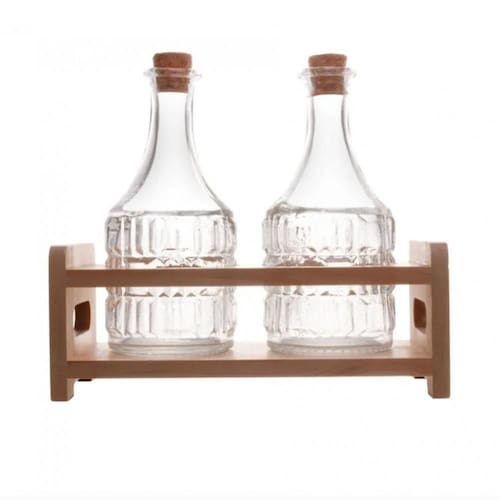 Conjunto 2 Garrafas de Azeite Suporte em Madeira 180ml Lyor
