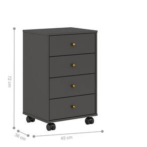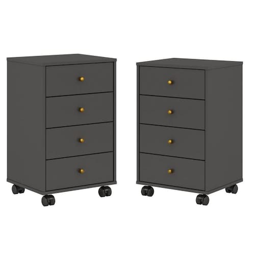 Além de suas quatro gavetas, ele ainda vem com um jogo de rodízios, facilitando assim o seu transporte, se necessário!