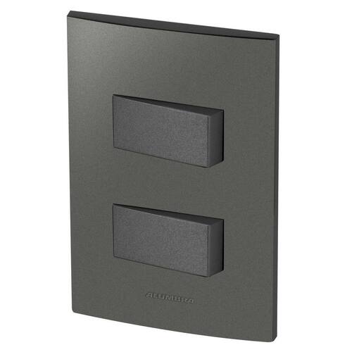 Alumbra Inova Pro Class - Placas Grafite / Módulos Grafite Linha Modular de Interruptores e Tomadas Conjunto Completo Desmontado: 2 Módulos de 1 Placa 4X2 para 2 Módulos 1 Suporte 4X2 2 Parafusos Cor: Grafite Para montar é apenas um click, só encaixar Marca de conformidade de produtos certificados. Marca: Não Informado