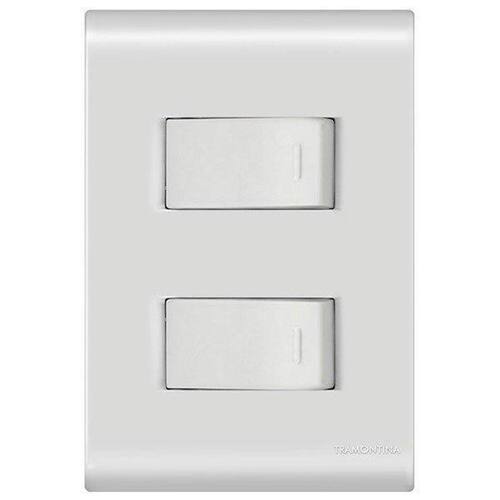 Interruptores e Tomadas - Tramontina Liz Branca Conjunto completo com: 2 Módulos de Interruptor Simples 1 Placa 4X2 1 Suporte 4X2 2 Parafusos Os itens acima são enviados desmontados, para montar é fácil, só encaixar.