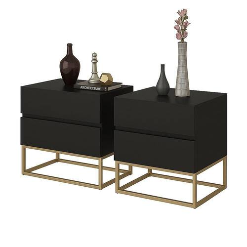 Kit 2 Eros 60cm Design Industrial e ElegânciaTransforme seu quarto com o toque moderno do Eros! Com acabamento premium, duas gavetas espaçosas e pés de ferro no estilo industrial, une beleza, praticidade e resistência.