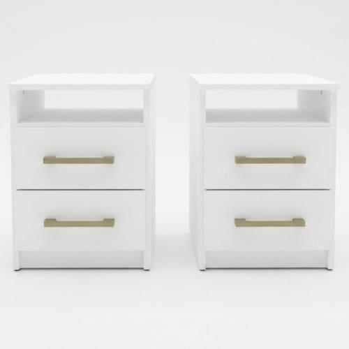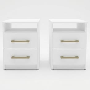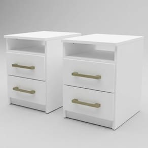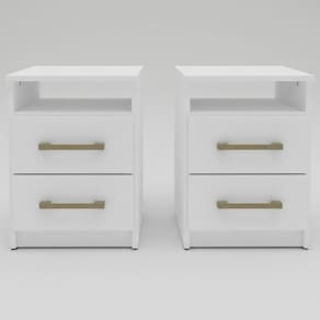 Possui duas gavetas com puxadores, perfeitas para armazenar objetos pessoais, e um nicho aberto, ideal para livros, celulares ou itens decorativos. Suas dimensões compactas tornam o móvel uma excelente opção para ambientes pequenos, sem abrir mão da funcionalidade.