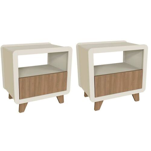 O Conjunto 2 Mesas de Cabeceira Mabel une design moderno, praticidade e acabamento de alto padrão, trazendo para o quarto o mesmo padrão de qualidade dos móveis planejados. Produzidas em 100% MDF com revestimento BP e fita de borda PVC 0,045cm, oferecem durabilidade, resistência e sofisticação. Cada mesa possui 1 gaveta ampla e 1 nicho aberto, perfeitos para organizar livros, objetos pessoais ou apoiar luminárias e itens decorativos. Com pés robustos e acabamento refinado, são peças versáteis que combinam facilmente com cabeceiras, camas e guarda-roupas em tons amadeirados, brancos ou cinza. Com 55 cm de altura, são ideais para garantir funcionalidade e elegância ao lado da cama. Acabamento da Gaveta: Melamínico Acabamento dos Pés: Melamínico Altura dos Pés: 11,5 cm Ambiente Principal: Quarto Complexidade da Montagem: Média: pode ser montado por mais de uma pessoa e/ou necessite de maior conhecimento para montagem Cor: Off White / Louro Freijó Grann Cor do Produto: Off White / Louro Freijó Grann Cor Flex: Não Cor Interna: Branco Escala de Brilho: Fosco Escala de Brilho da Gaveta: Fosco Gaveta com Chave: Não Informações Complementares: Limpar somente com um pano levemente umedecido. Indicado para ambientes internos. Itens Inclusos: 2 Mesas de Cabeceira, Kits Ferragens e Manual de Montagem Linha ou Coleção: Mabel Manual de Montagem e Instalação: https://product-hub-prd.madeiramadeira.com.br/237714601/documents/ee3b812b-42cb-4cec-bc77-6d34eed14c583106044657817538823513136.pdf Marca: FD Material da Gaveta: MDF Material dos Pés: MDF Material Principal: MDF Montagem Flex: Não Necessita Montagem: Sim Origem do Produto: Nacional Pés Reguláveis: Não Peso: 15 kg Peso Máximo por Gaveta: 5 kg Pet Friendly: Não Possui Espelho: Não Possui Possui Nichos: 02 Possui Pés: 08 Possui Portas: Não Possui Prateleiras: Não Possui Vidro: Não Quantidade de Nichos: 02 Recomendações de Uso, Manutenção e Limpeza: Limpar somente com um pano levemente umedecido. Indicado para ambientes internos Sapatas Niveladoras: Não Sistema de Montagem: Parafusos, cavilhas e minifix Suporta Até (kg): 5 kg Tipo de Corrediça da Gaveta: Metálica Telescópica Tipo de Puxador da Gaveta: Embutido
