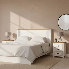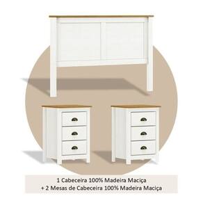 Sofisticação e funcionalidade para seu quarto. A cabeceira 100% em madeira maciça na cor branco com detalhes em Freijó valoriza o ambiente com sofisticação e estilo. As duas mesas de cabeceira oferecem praticidade com três gavetas espaçosas e acabamento refinado, combinando o charme retrô com um toque moderno. Ideal para compor quartos acolhedores e bem organizados. Possui Portas: Não Suporta Até (kg): 10 kg Altura do Conjunto: 111 cm Ambiente: null Ambiente Principal: Quarto Cor: Branco/Freijó Informação Complementar: 2x Mesa de Cabeceira 3 Gavetas Topázio 100% Madeira Maciça para Quarto Branco /Freijó Largura: 46,0 cm Altura: 68,0 cm Peso: 12,05 kg Profundidade: 41,0 cm Necessita Montagem: Sim