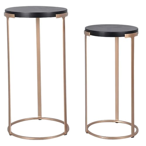 Conjunto 2 Mesas Laterais em Metal e Madeira Dourado e Preto