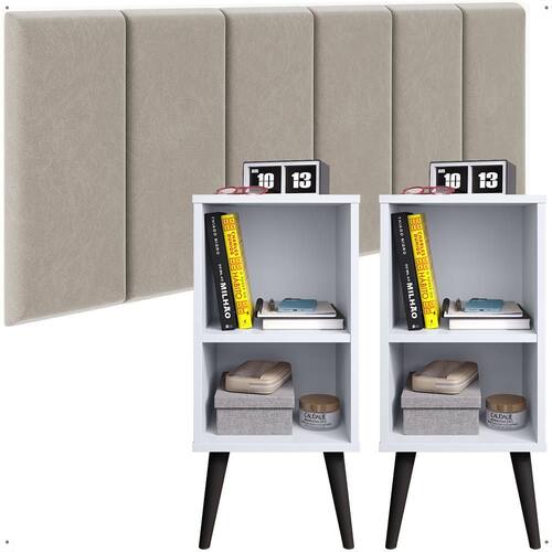 Composto pela Mesa de Cabeceira Charme e Cabeceira Suspensa Julia, garantindo ao seu ambiente beleza e conforto, sem deixar de lado a praticidade na hora da organização.