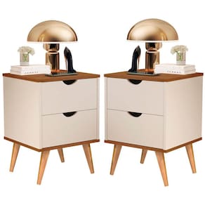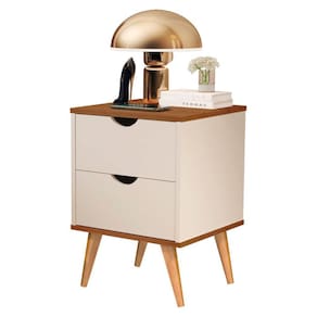 Conjunto 2 Peças Mesa de Cabeceira Grécia Elegance 2 Gavetas Pés Palito