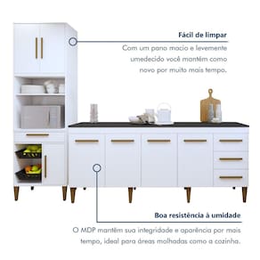 Se o que você busca é organização e um toque moderno, nossa cozinha é a sua escolha perfeita! Com um paneleiro cheio de nichos, você tem lugar para guardar tudo com praticidade, além de manter suas frutas sempre à mão, e o balcão com 4 portas e 3 gavetas oferece muito espaço para acomodar panelas, utensílios e mantimentos sem bagunça. Além disso, a cor harmoniza com qualquer decoração, deixando o ambiente ainda mais sofisticado. Mais funcionalidade, mais estilo e mais espaço para sua rotina!