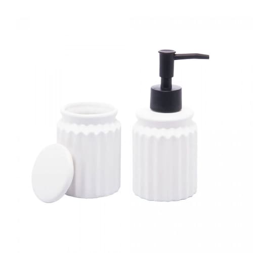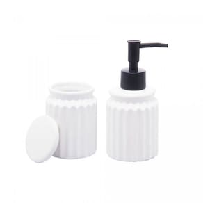 O Conjunto 2 Peças para Banheiro de Cerâmica Stripes Branco não é apenas um conjunto, é uma declaração de estilo que aprimora o visual do seu banheiro.
