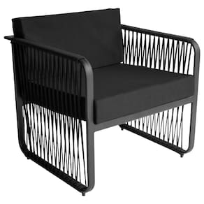 Conjunto 2 Poltronas área Externa Corda Náutica Santiago Preto/preto A Poltrona Santiago e perfeita para areas gourmet, varandas, churrasqueiras e espacos externos. Produzida artesanalmente, sua estrutura em aluminio garante leveza e resistencia, enquanto os acabamentos em corda nautica adicionam charme e sofisticacao. Seu assento estofado conta com tecido impermeavel, proporcionando ainda mais comodidade e praticidade no dia a dia. Caracteristicas do Produto: Material: Aluminio Material do Assento: Tecido Impermeavel Material do Encosto: Tecido Impermeavel Acabamento: Corda Nautica Tipo de Assento: Fixo Tipo de Encosto: Fixo Possui Apoio de Braco? Sim Peso suportado(kg): 150kg