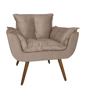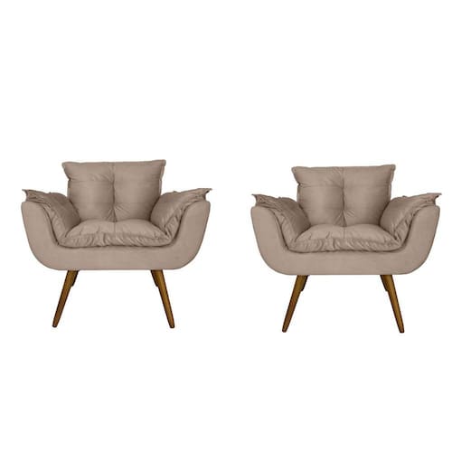 Conjunto 2 Poltronas Decorativa Estofada Para Salão de Beleza Opala Suede Bege - LM DECOR