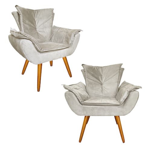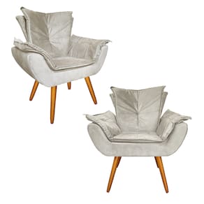 Conjunto 2 Poltronas Decorativas Estofadas Sala Comercial Apolo Suede Bege - LM DECOR