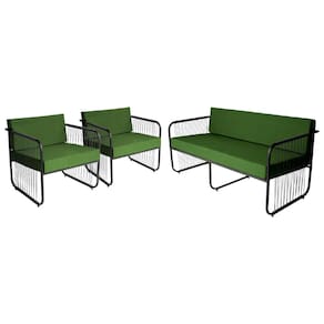 Conjunto 2 Poltronas e 1 Namoradeira para Sala de Estar Córdova em Aço Carbono e Fibra Sintética Acesse Móveis - Verde Limão