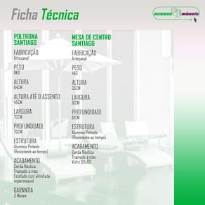 Alem disso, traz conforto com assentos e encosto estofados em tecido impermeavel. Aproveite o melhor do ar livre com o Conjunto Santiago e transforme seu ambiente com charme e qualidade!