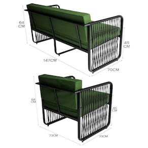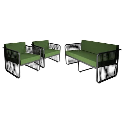 Conjunto 2 Poltronas E Namoradeira Corda Náutica Santiago Preto/verde