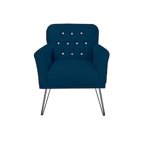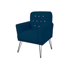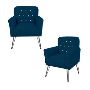Conjunto 2 Poltronas Estofada Para Escritório Pés de Ferro Anitta Suede Azul Marinho - LM DECOR