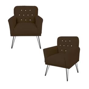 Conjunto 2 Poltronas Estofada Para Escritório Pés de Ferro Anitta Suede Marrom - LM DECOR