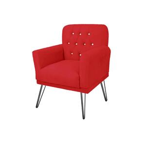 Conjunto 2 Poltronas Estofada Para Escritório Pés de Ferro Anitta Suede Vermelho - LM DECOR