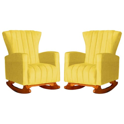 Conjunto 2 Poltronas Estofadas de Balanço Melinda Suede Amarelo - LM DECOR