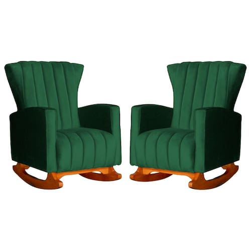 Conjunto 2 Poltronas Estofadas de Balanço Melinda Veludo Verde - LM DECOR