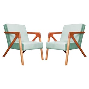 Conjunto 2 Poltronas Monalisa Com Braços de Madeira Veludo Acqua - LM DECOR - Verde Claro