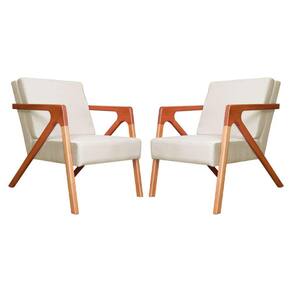 Conjunto 2 Poltronas Monalisa Com Braços de Madeira Veludo Bege - LM DECOR