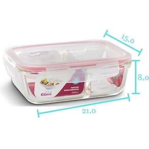 Conjunto 2 Potes de Vidro com Tampa Hermética Retangular com Divisória 1010ml